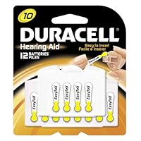 Duracell EasyTab DA10B12RC 1.4-Volt Zinc Air Hearing Aid Batteries, Size 10, 12-Count Pack (Pack of